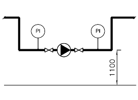 molemmille puolille pumppua. Painemittarit tarvitaan toiminnan tarkkailua varten.